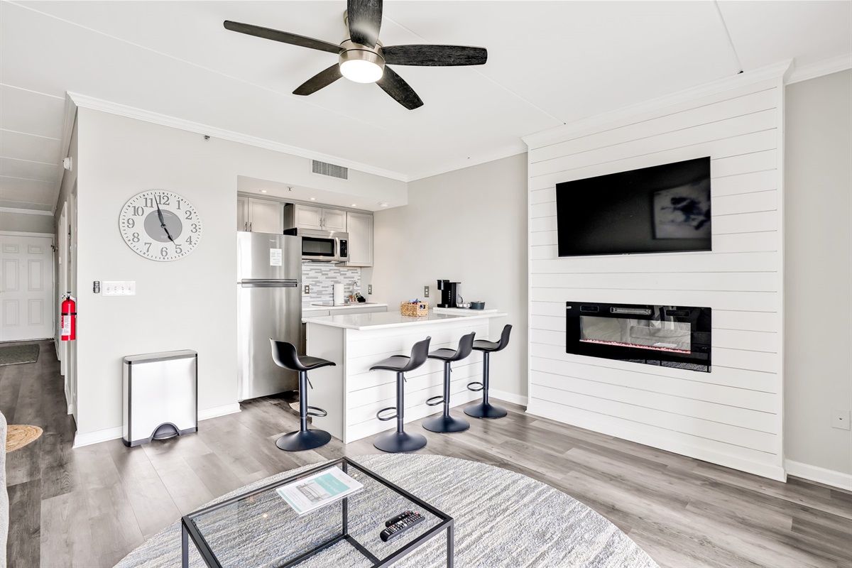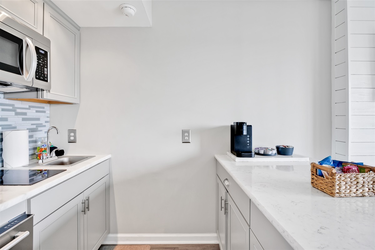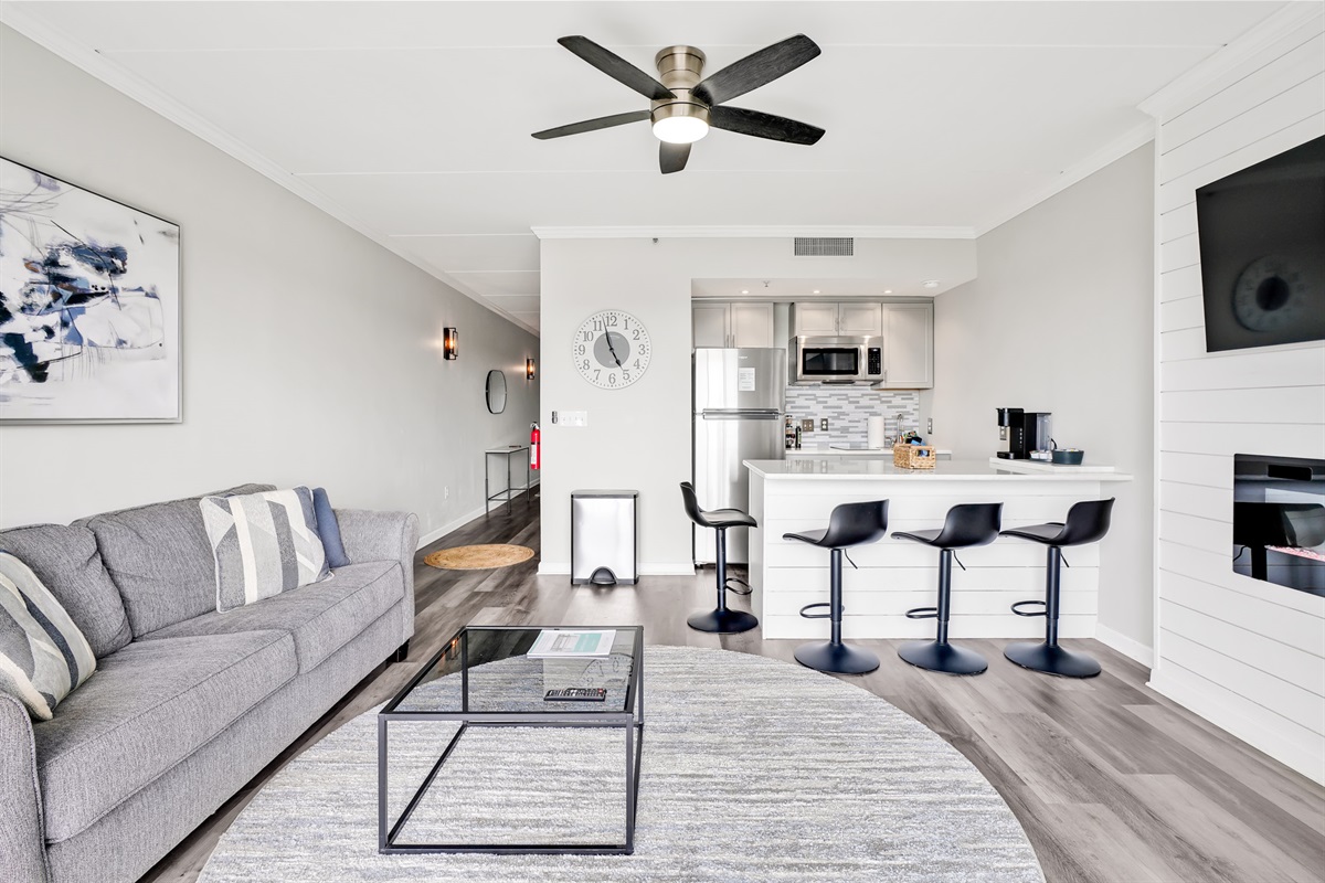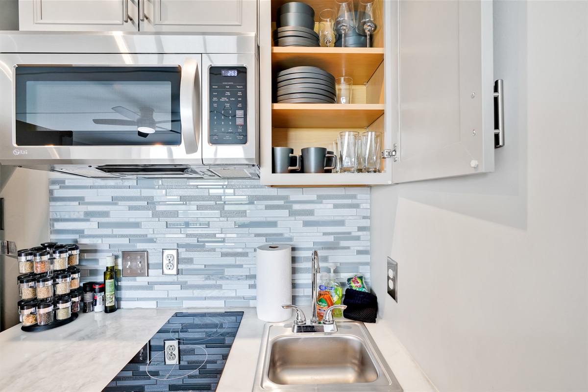 Battleship Sunset is clean, modern, and fully stocked with all of the amenities you need. Check in anytime with contactless, keyless entry and clear instructions. The private condo boasts high ceilings and has a living room, bedroom, kitchen, bathroom, and private balcony with stellar views of historic USS North Carolina Battleship. Snacks and bottled water await your arrival. The living room has a large smart TV, comfortable couch, and wireless internet. The kitchen is fully stocked with cookware, dishes, flatware, towels, soaps, sponges, Keurig coffee machine with regular and decaf pods, and the basics like salt, pepper, and oil. The bathroom is clean with fluffy towels, nice individual soaps, a modern glass shower with nice water pressure. The queen size bed has a comfortable mattress and a fully encapsulating mattress protector and quality pillows with fully encapsulating protectors to ensure that they are sanitary. The blankets and linens are clean and of high quality.