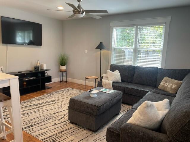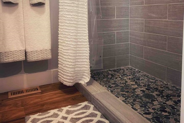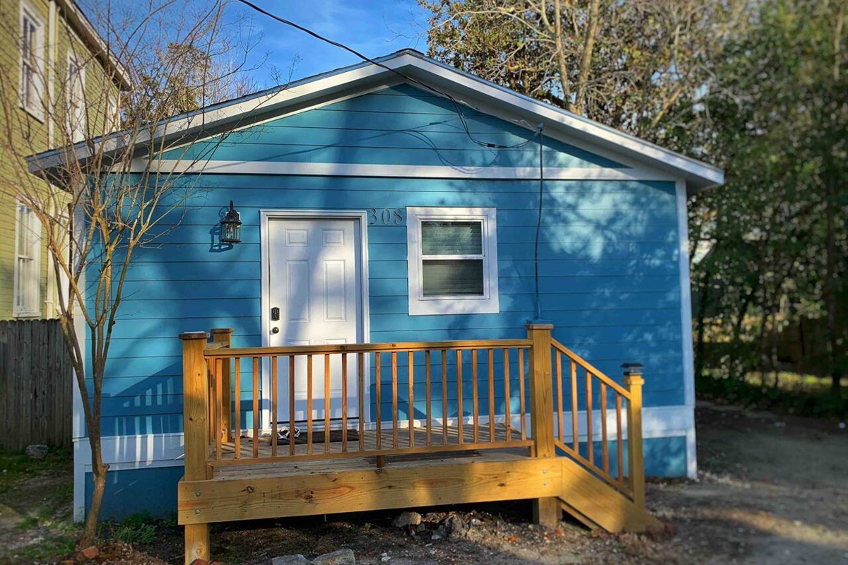 Though the bathroom is compact, the on-demand hot water system ensures you’ll never run out, even with multiple showers. Outside, relax on the back porch, or take a short walk to downtown Wilmington to enjoy the many dining options the area has to offer.