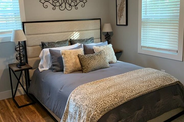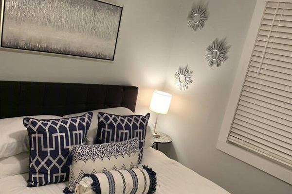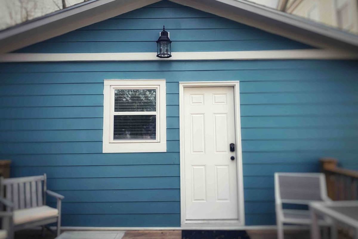 As you pull up to the Cozy Blue Bungalow, you’ll notice that it stands out from the historic homes on the street. Built in the 1970s by a local doctor who rented out most of the homes in the area, this little bungalow has been lovingly restored. While it’s compact at 900 square feet, it offers all the essentials for a comfortable stay.