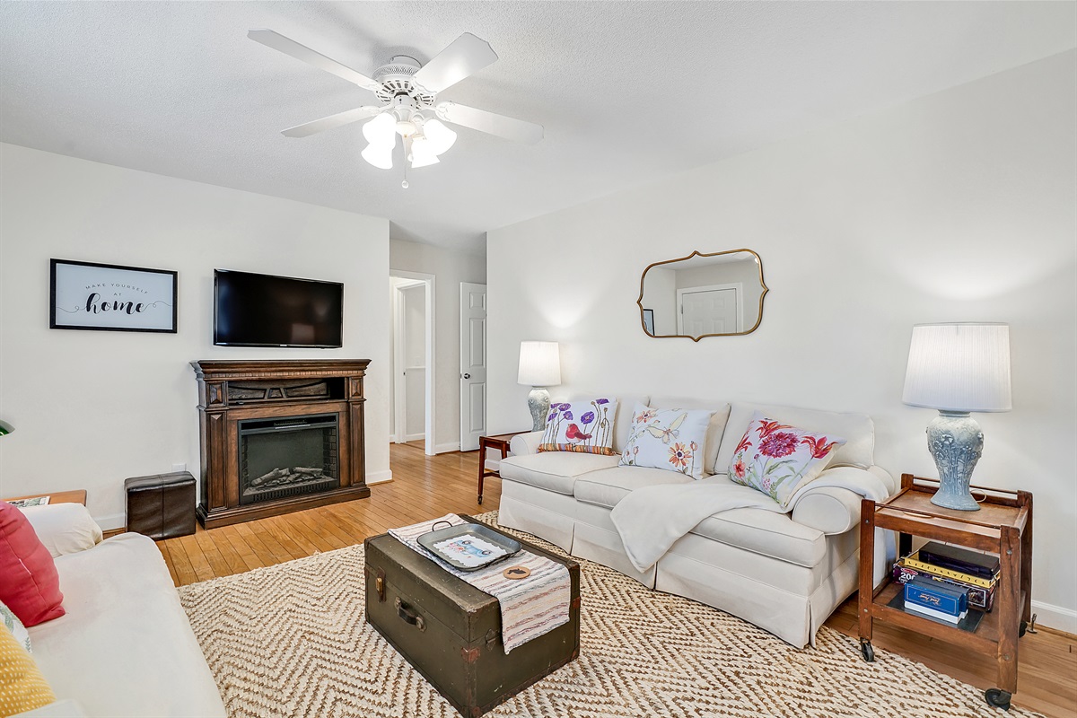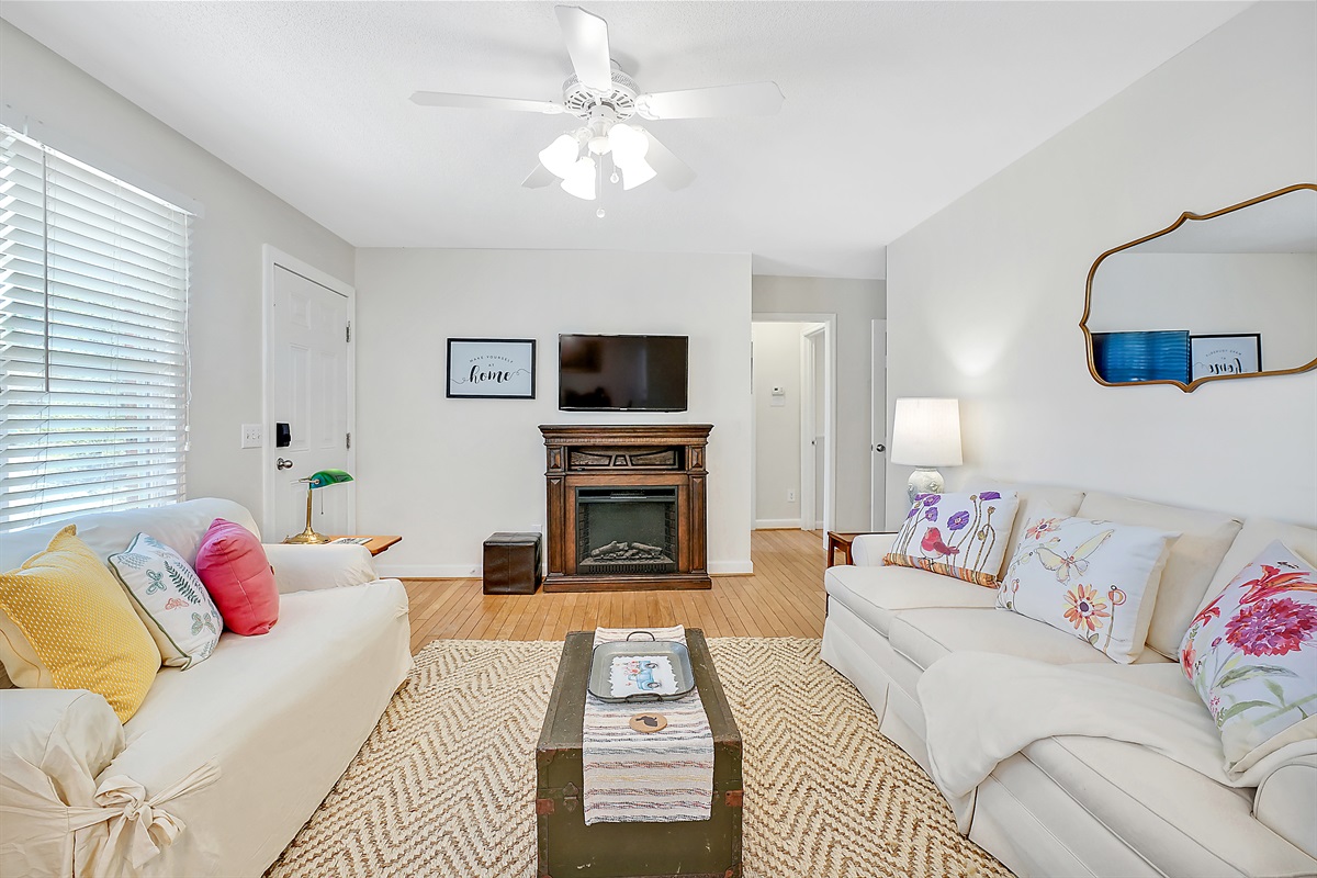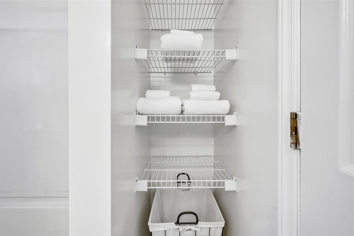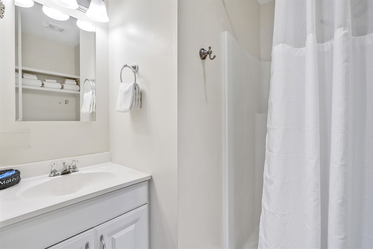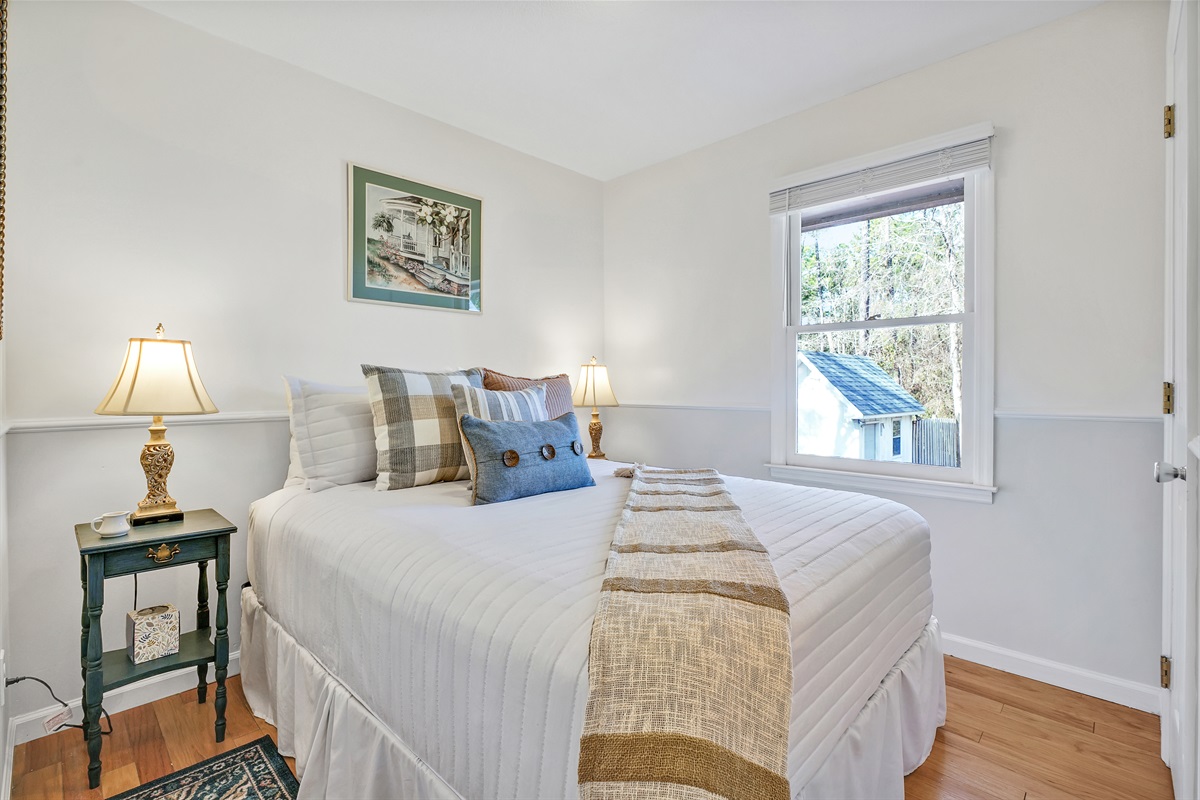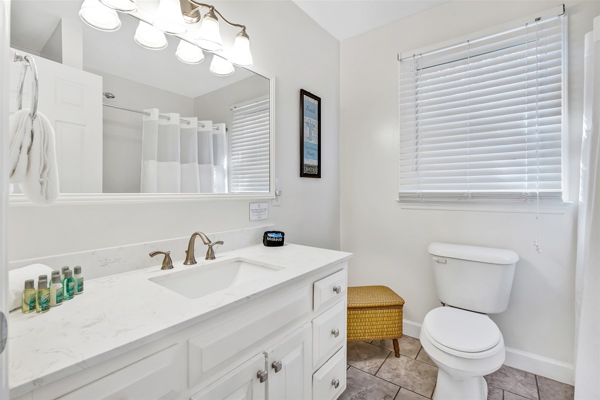 After a day of exploring Wilmington beaches and attractions, retire to one of the three comfortable bedrooms, each furnished with cozy bedding and ample storage. Two of the bedrooms features queen sized beds and the third bedroom has a day bed with a trundle bed for the kids. All the bedrooms have easy access to the shared bathroom.