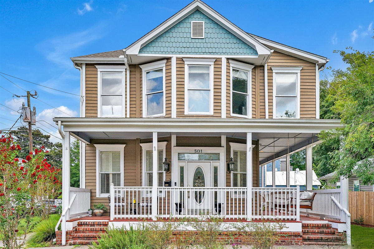 This spacious historic single family home with 4 bedroom and 2 1/2 baths, is located on a quiet corner lot in Downtown Wilmington and is perfect for larger family vacations and trips with friends. It was recently remodeled and is nice, clean, and well appointed with many high end features.