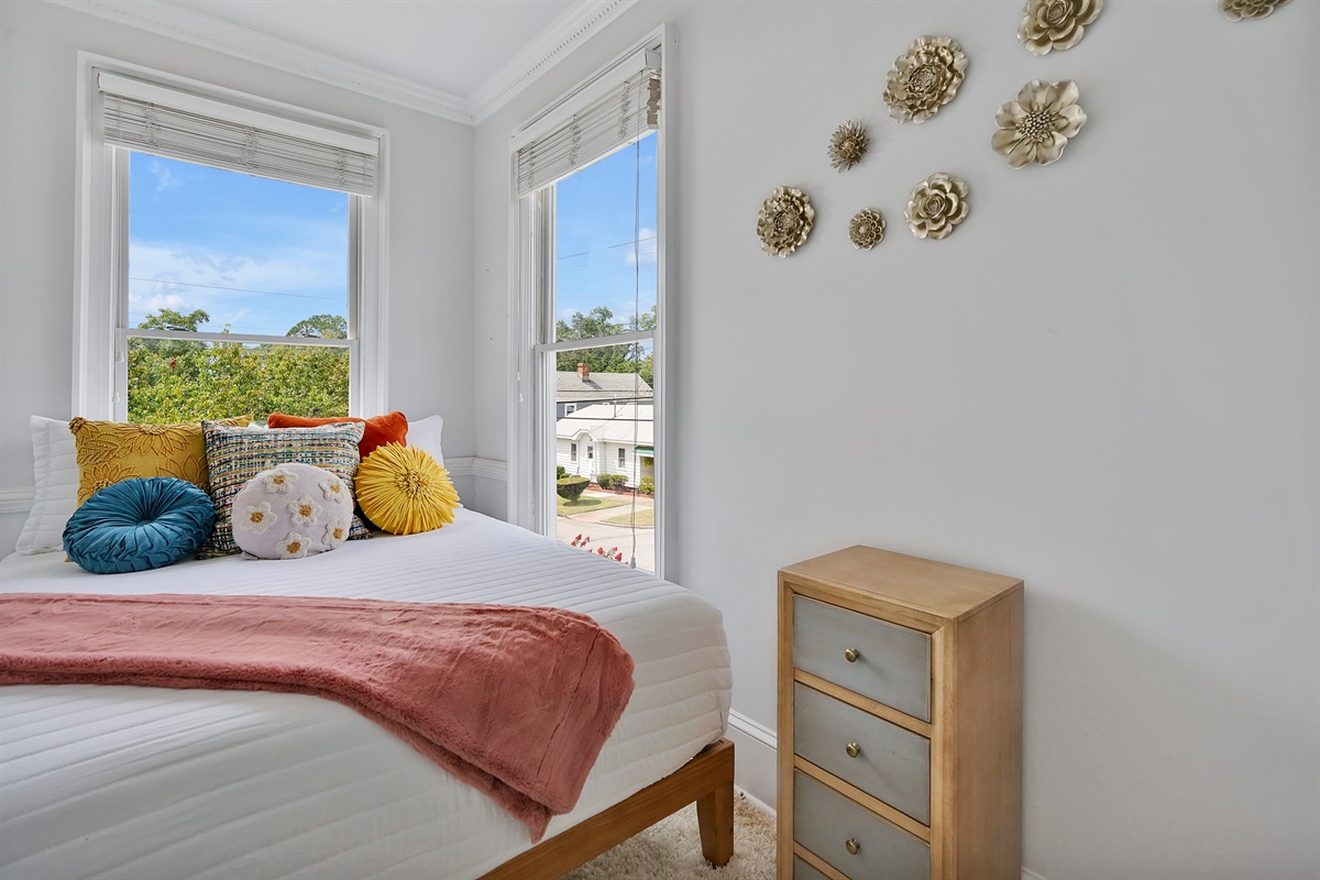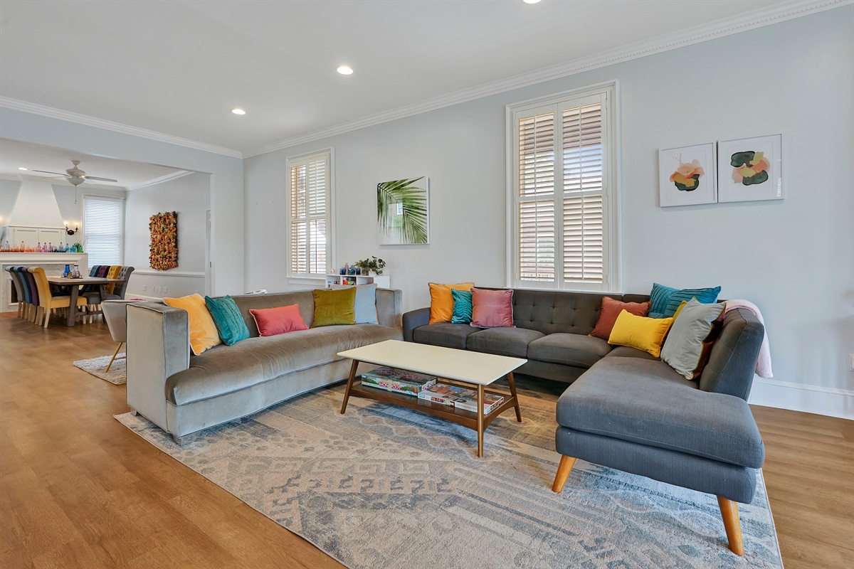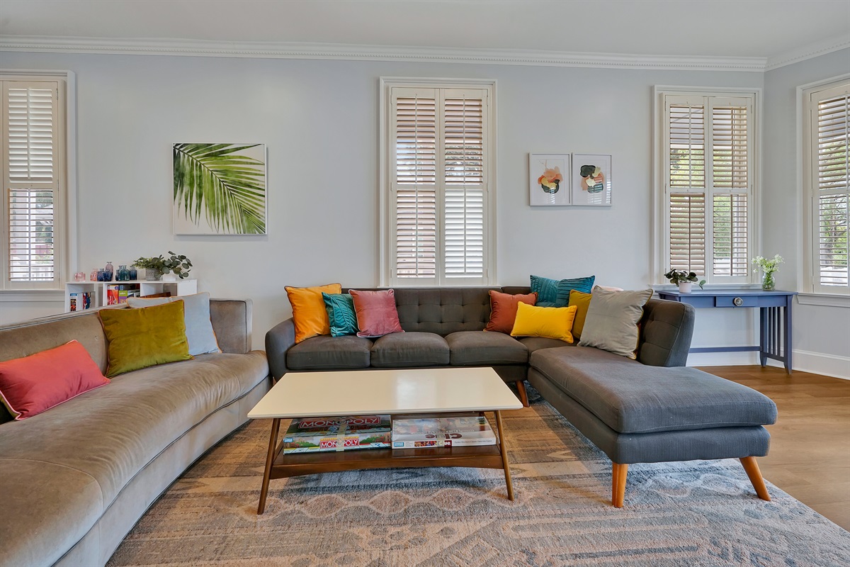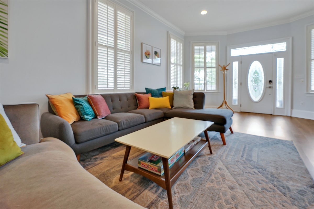 With 2,900 sq ft of living space and high ceilings, there’s plenty of room for gatherings of up to 9 people. There are many windows throughout the home and natural light pours in, giving the home a cheerful atmosphere.