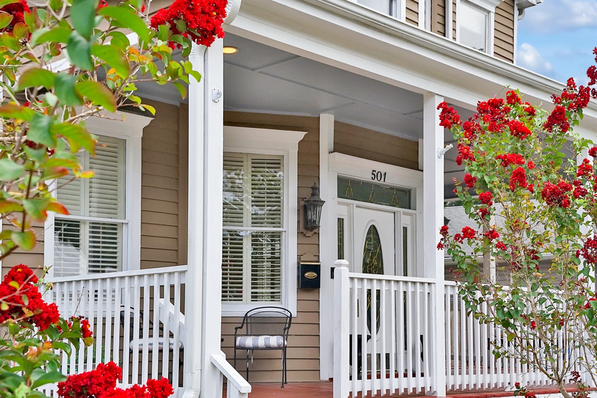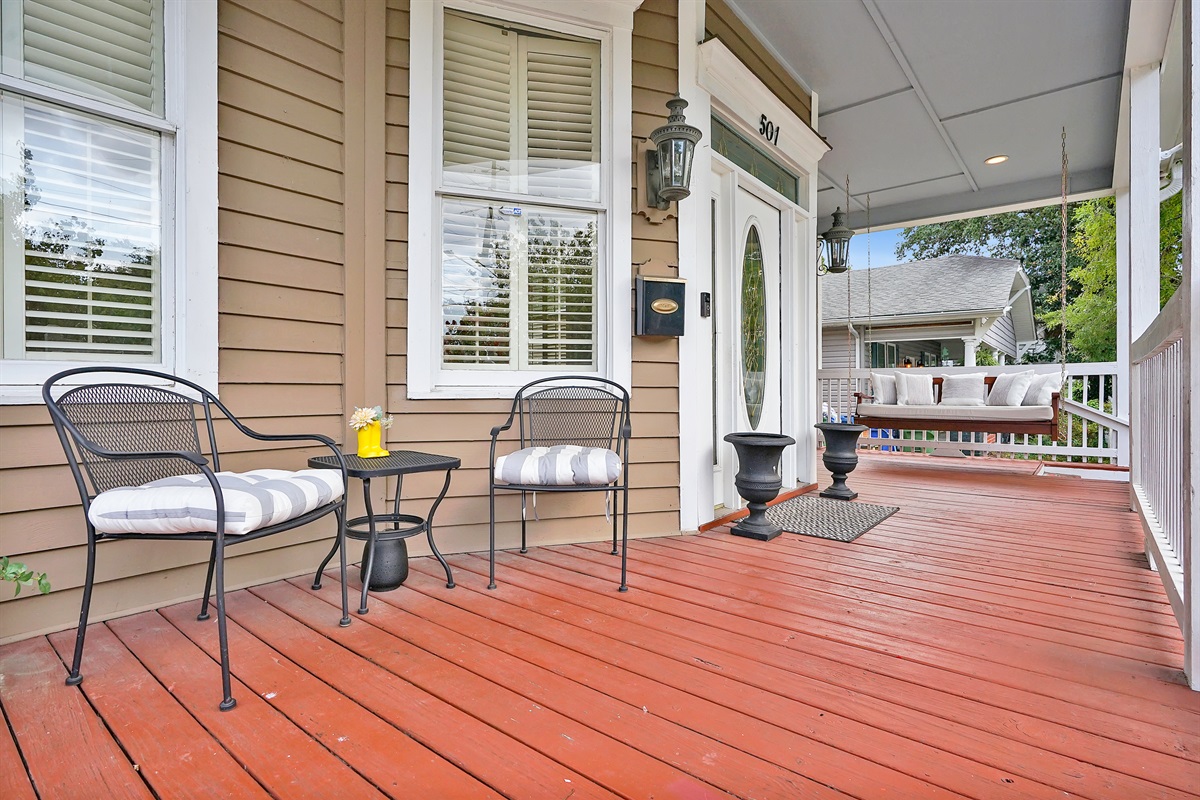 The charming wrap around porch has a swing and seating on the front, and additional seating on the side that wraps around to back yard with a privacy fence. You’ll love the inviting feeling of the porch when you’re hanging out in true southern style.