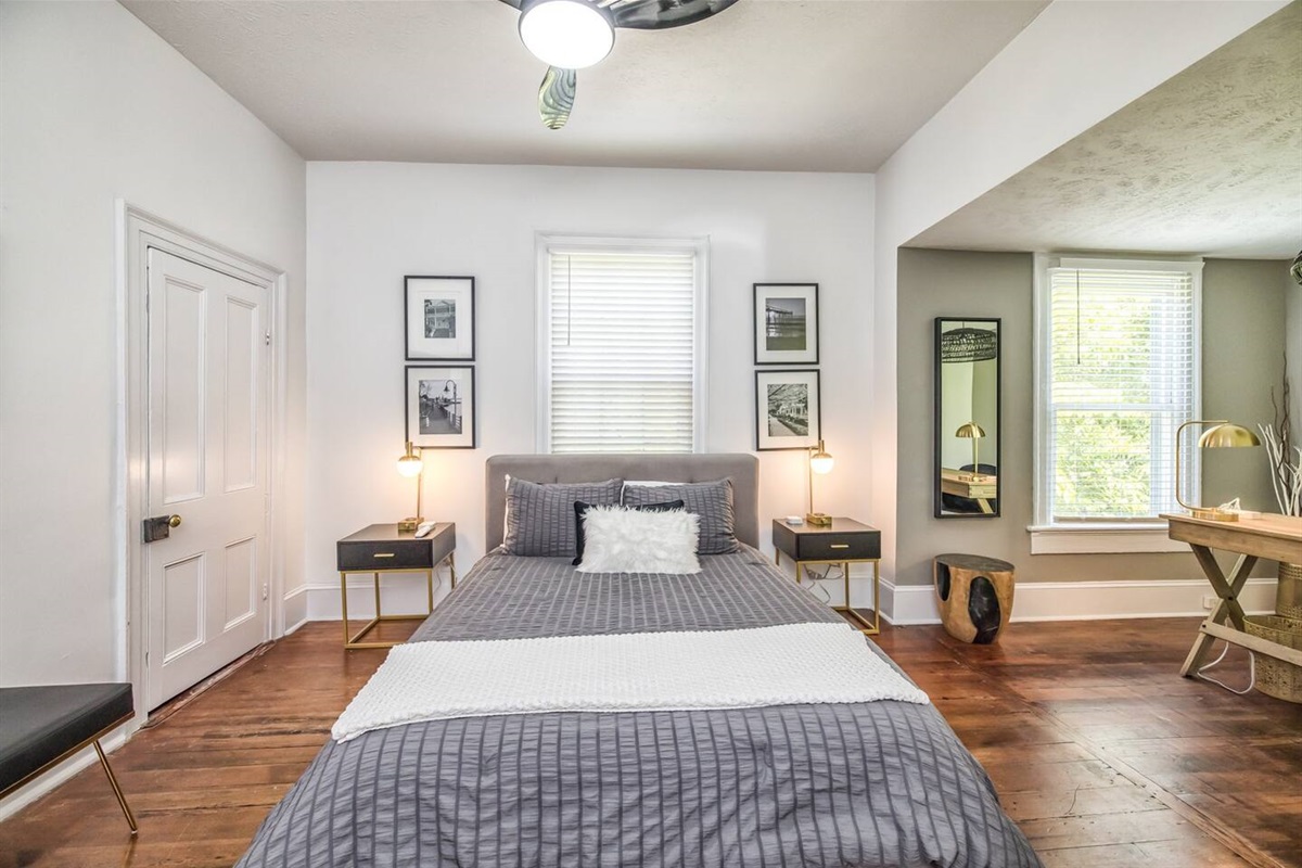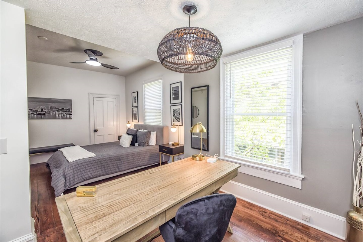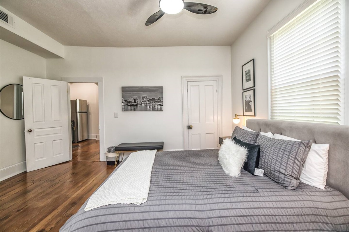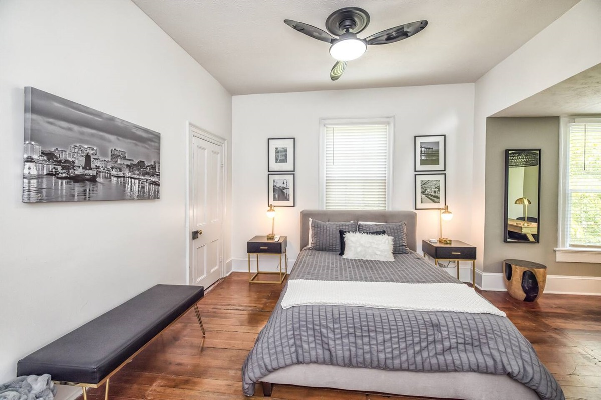 Situated right downtown in a beautiful historic row of mansions, you’ll find this condo has old world charm paired with modern amenities. The vintage hardwood floors, baseboards, windows and decorative non-working fireplace take you back in time to the 1800’s, but the comfortable furniture, clean atmosphere, stocked kitchen, comfy bed, smart TV, and wifi meet today’s traveler’s needs. This condo is one of five in a large historic house on Front Street.